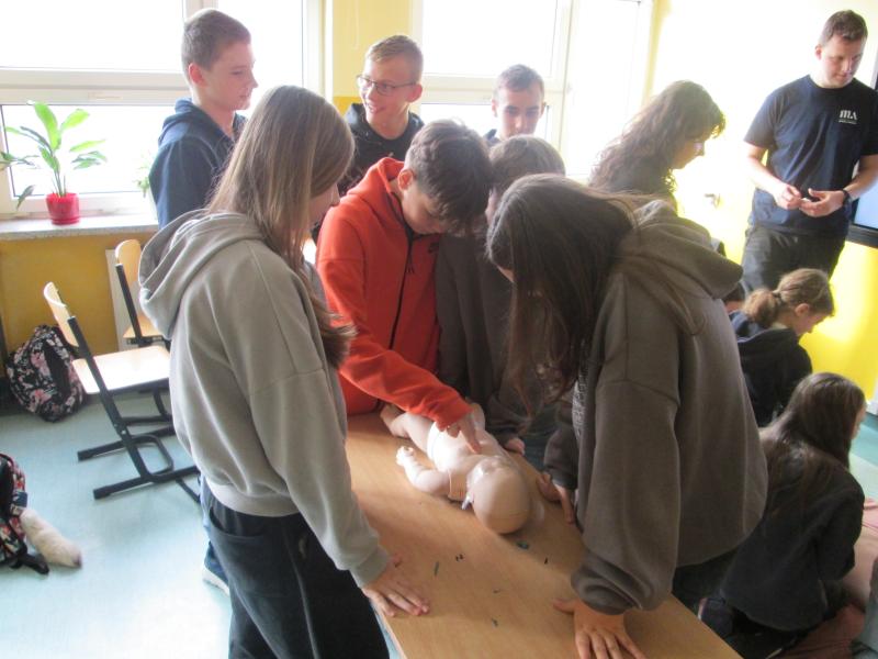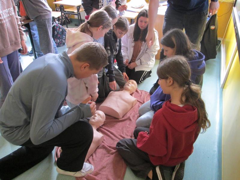 Podczas warsztatów uczniowie poznali podstawowe zasady udzielania pierwszej pomocy, nauczyli się reagować w sytuacjach zagrożenia życia oraz przećwiczyli resuscytację krążeniowo–oddechową na fantomach.