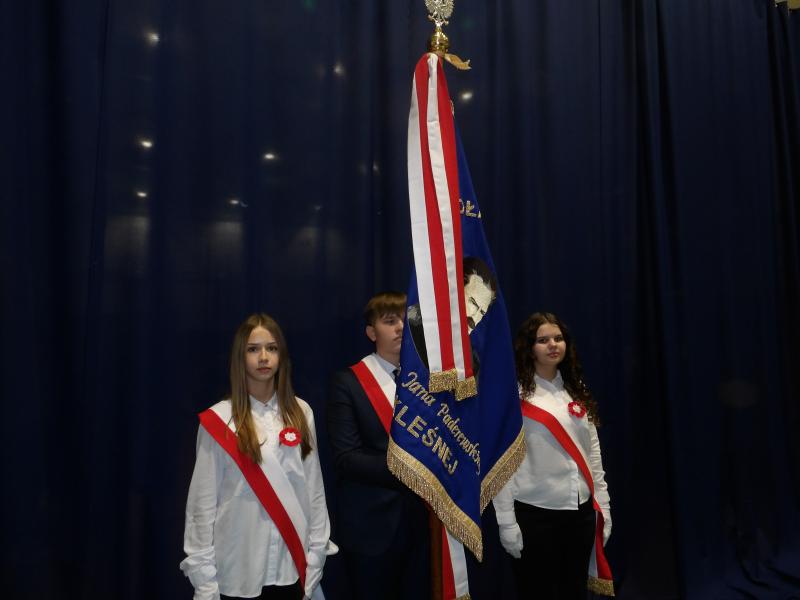 Wspólne śpiewanie pieśni patriotycznych, recytacja wierszy znanych polskich poetów i taniec z szarfami wykonany przez uczniów klasy szóstej pozwoliły nam przeżyć w podniosłym i patriotycznym nastroju to niezwykłe wydarzenie. Mamy nadzieję, iż wpisze się ono już na stałe w kalendarz wydarzeń szkolnych.