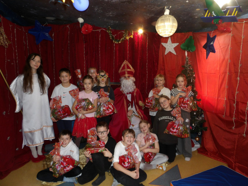 2 grudnia 2025 r. uczniowie klas młodszych udali się do Krakowa do Krainy Zabaw Dziecięcych, gdzie czekały na nich różnorodne atrakcje. Z pomocą aniołków dzieci pokonywały różne przeszkody, rozwiązywały zagadki oraz uczyły się piosenki dla Oczekiwanego Gościa. Po słodkim poczęstunku wszyscy powitali Mikołaja. Spotkanie przebiegało w bardzo radosnej i świątecznej atmosferze. Mikołaj obdarował wszystkie dzieci wspaniałymi prezentami. Na twarzach dzieci malowała się wielka radość i przejecie.