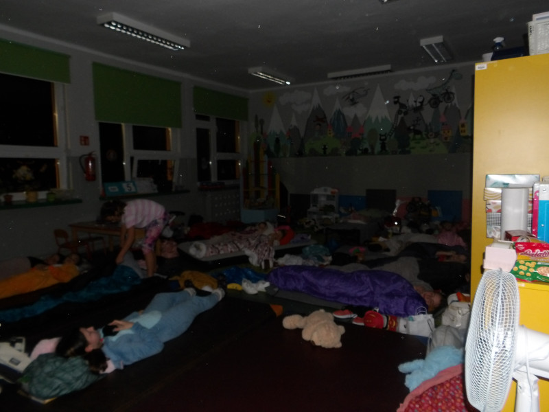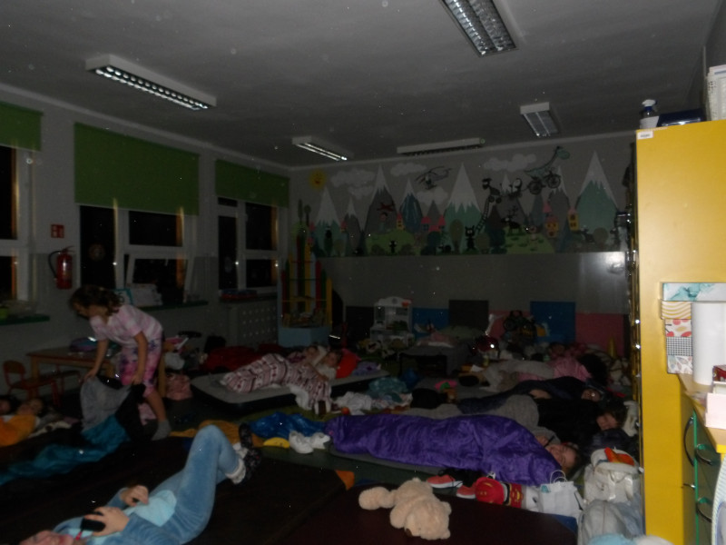 Wieczorem szkolne korytarze zamieniły się w teren przygody, a sale lekcyjne stały się bazami noclegowymi.