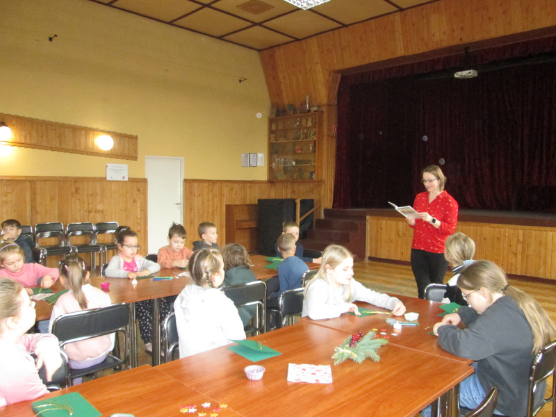 Kolejne odwiedziny Pani Małgosi z Biblioteki Publicznej w Okleśnej. Poznaliśmy przepiękną opowieść w klimacie Bożego Narodzenia i wykonaliśmy własnoręcznie kule śnieżne.