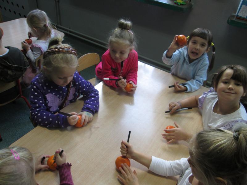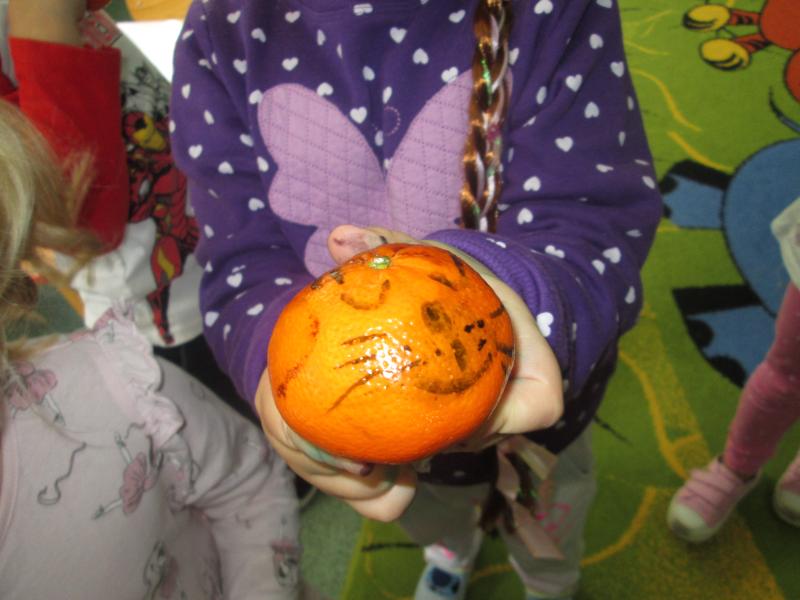 Z okazji zbliżającego się Święta Dyni, nasze przedszkolaki dały popis kreatywności, tworząc urocze dynie z… mandarynek! 🍊