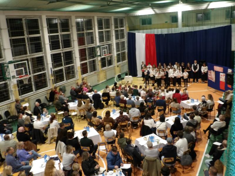 15 listopada, po raz pierwszy w naszej szkole, została zorganizowana wieczernica patriotyczna z udziałem uczniów wszystkich klas. Do wspólnej biesiady zostały zaproszone Panie z Koła Gospodyń Wiejskich w Okleśnej, które wraz z Radą rodziców przygotowały słodki poczęstunek. Zjawili się też rodzice, dziadkowie, rodziny naszych uczniów, a także mieszkańcy Okleśnej i okolic, a także zaprzyjaźnieni z naszą Szkołą goście.