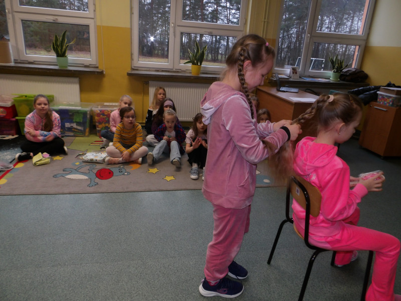 Pani Monika opowiedziała dzieciom o zawodzie fryzjerki, pokazała różne techniki czesania oraz zaprezentowała profesjonalne akcesoria fryzjerskie. To była nie tylko świetna zabawa, ale także bardzo wartościowa lekcja!