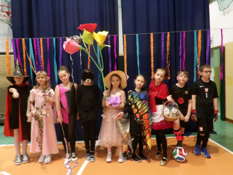 Uczestnicy zaprezentowali niezwykle kreatywne, barwne i pomysłowe stroje, wykazując się dużą wyobraźnią. Stroje oceniane były w pięciu kategoriach: strój najbardziej kreatywny, najbardziej kolorowy, najbardziej ozdobiony, najzabawniejszy oraz postać z bajki. Pokaz dostarczył wielu radości zarówno dzieciom, jak i publiczności. Nie zabrakło zabaw, które przygotowały i poprowadziły dziewczęta z Samorządu Uczniowskiego. Na wszystkich uczniów czekał również słodki poczęstunek.